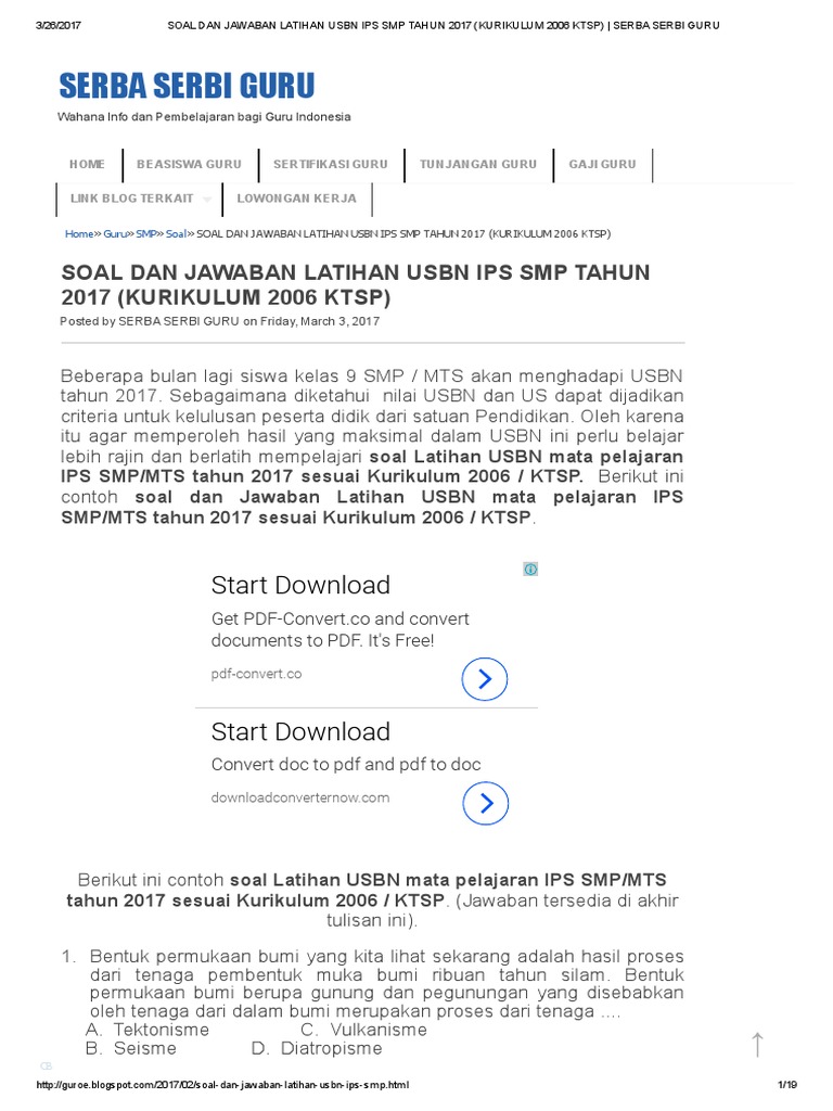 Download Soal Usbn Tingkat Smp Mushlihatun Syarifah