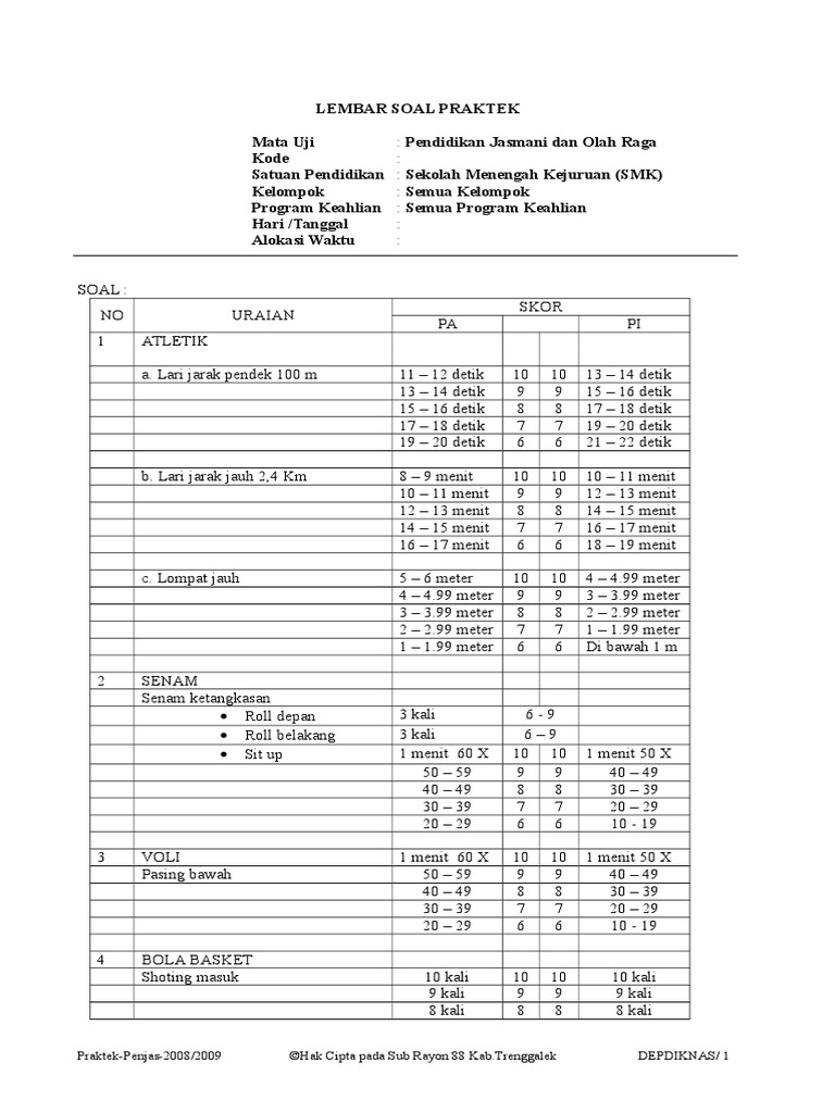 Format Penilaian Ujian Praktek Penjaskes Smp Kelas 9