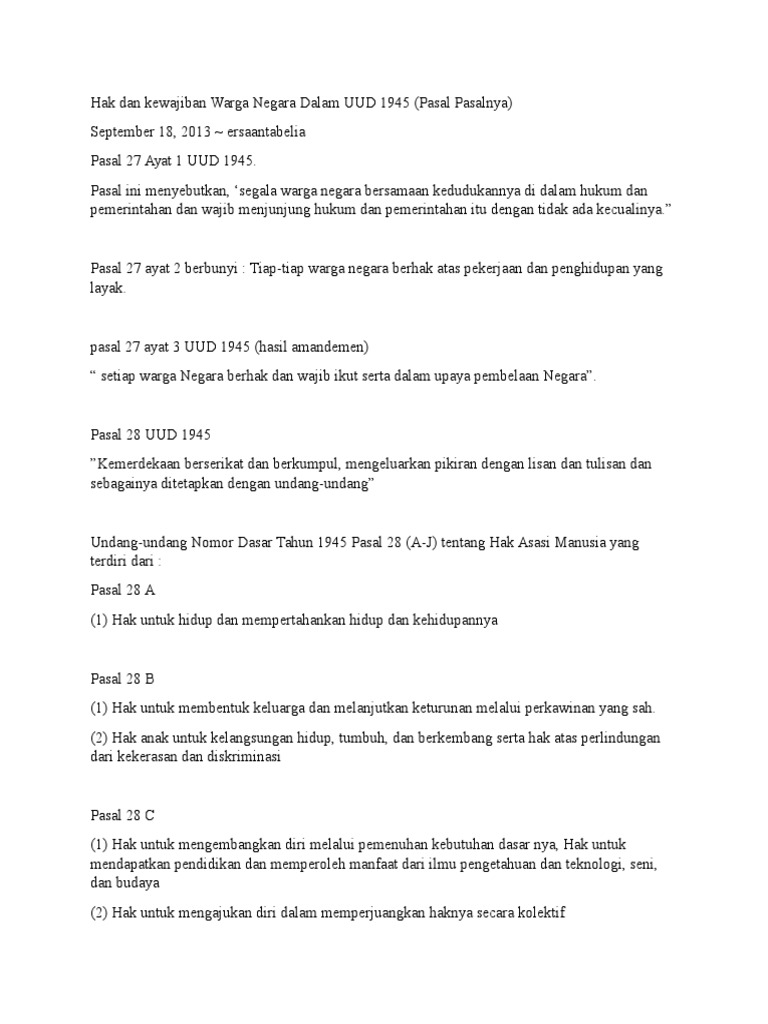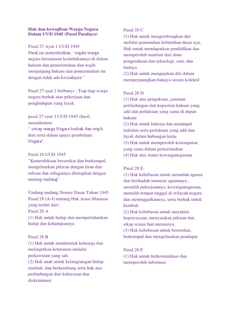 Hak Dan Kewajiban Warga Negara Dalam Uud 1945 Beserta Pasalnya