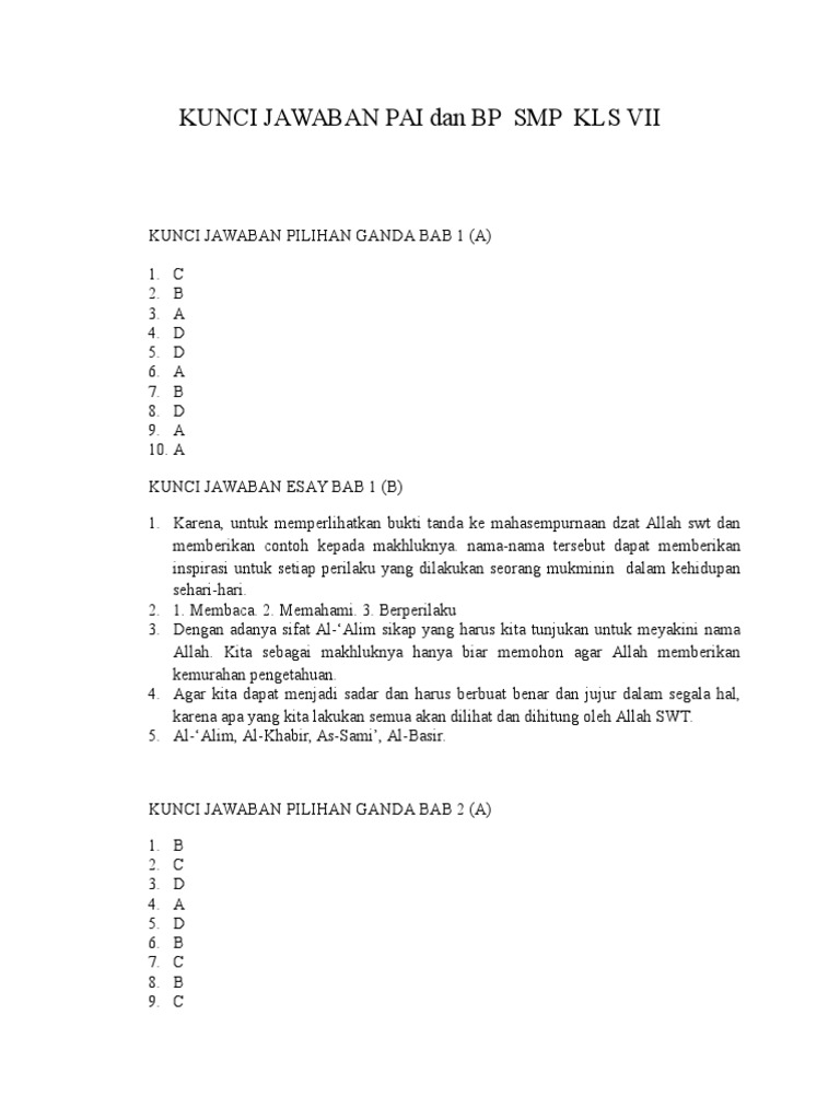 Kisi Kisi Soal Dan Jawaban Pai Smp Kelas 7 Semester Ganjil