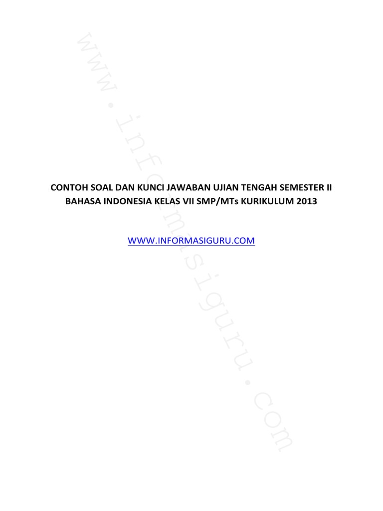 Soal Dan Kunci Jawaban Ujian Tengah Semester Ii Bahasa Indonesia