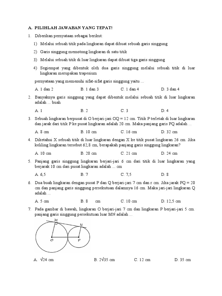Soal Ulangan Harian 2 Garis Singgung Lingkaran Pdf