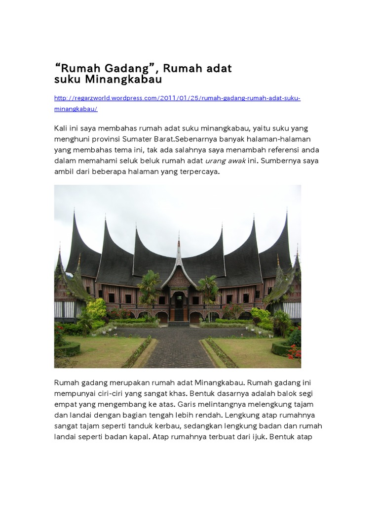 Rumah Gadang Rumah Adat Suku Minangkabau Regarzworld