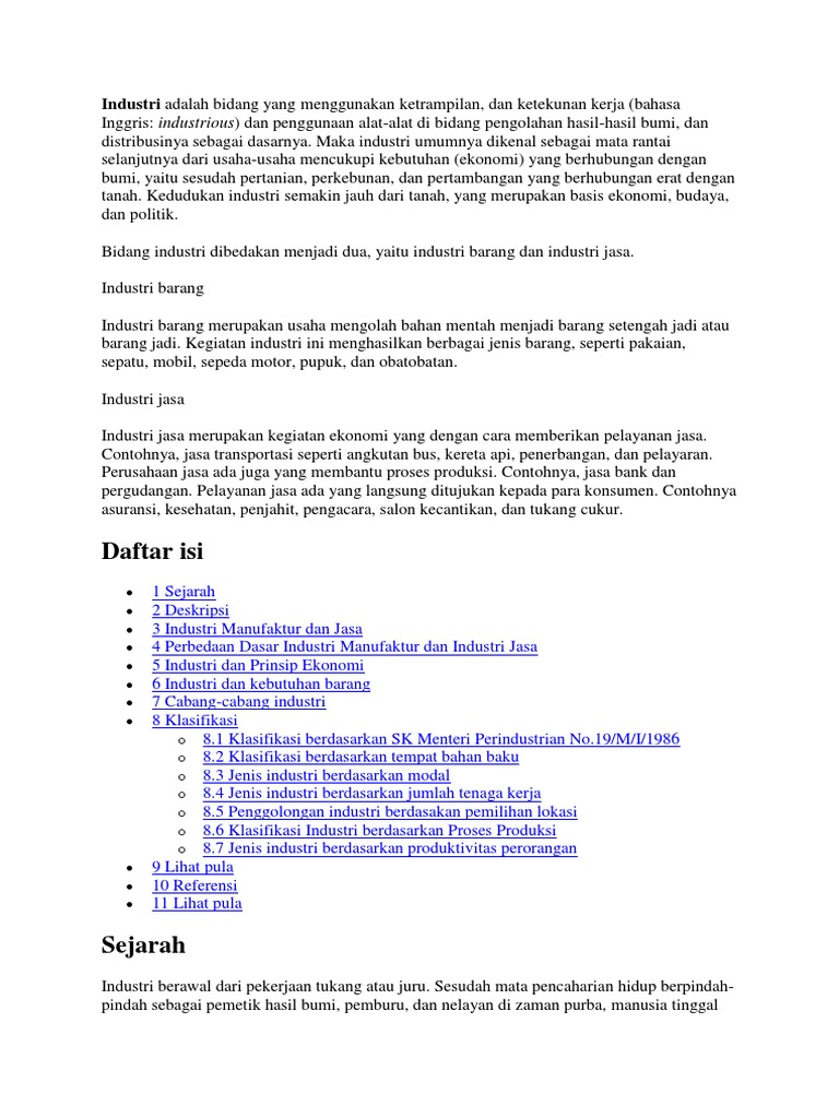 Industri Adalah Bidang Yang Menggunakan Ketrampilan