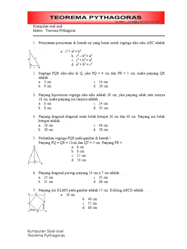 Contoh Soal Dan Pembahasan Tentang Teorema Pythagoras