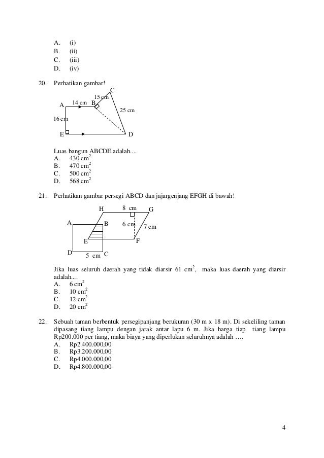 Contoh Soal Dan Pembahasan Tentang Bangun Datar Segi Empat Berupa