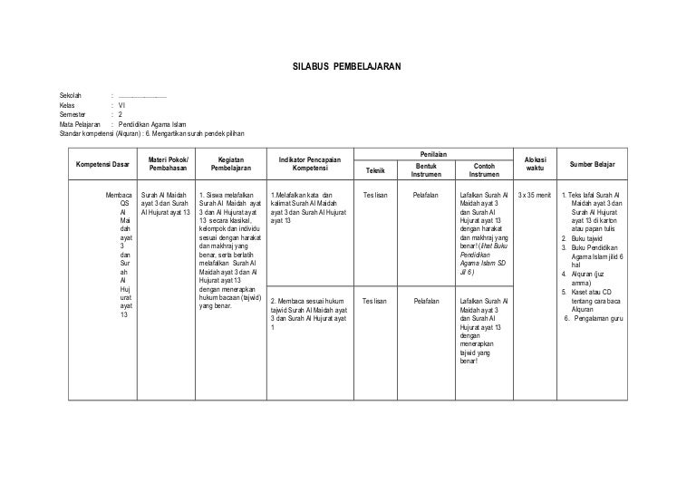 Rpp Pai Sd Kurikulum 2013 Semester 2 Dilengkapi Silabus Tempat