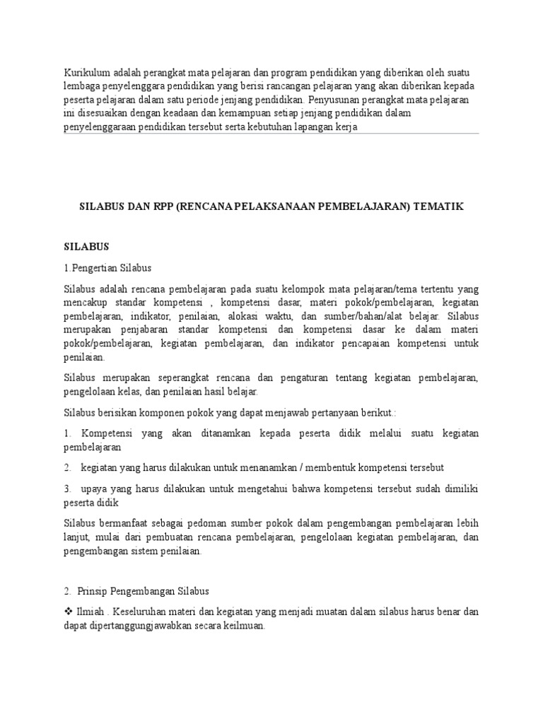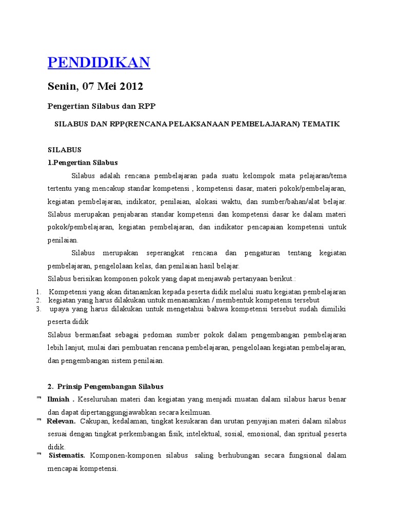 Silabus Dan Rpp Pengertian Tujuan Manfaat Pedoman Prinsip