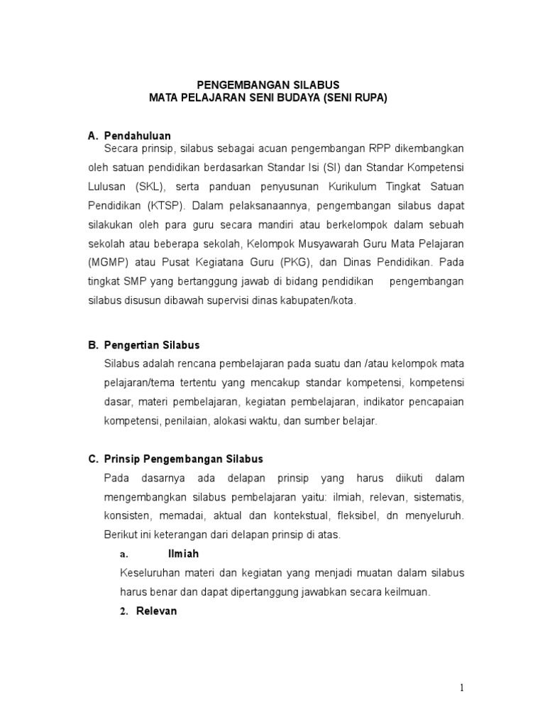 Pengembangan Silabus Mata Pelajaran Seni Budaya Seni Rupa 1 Doc