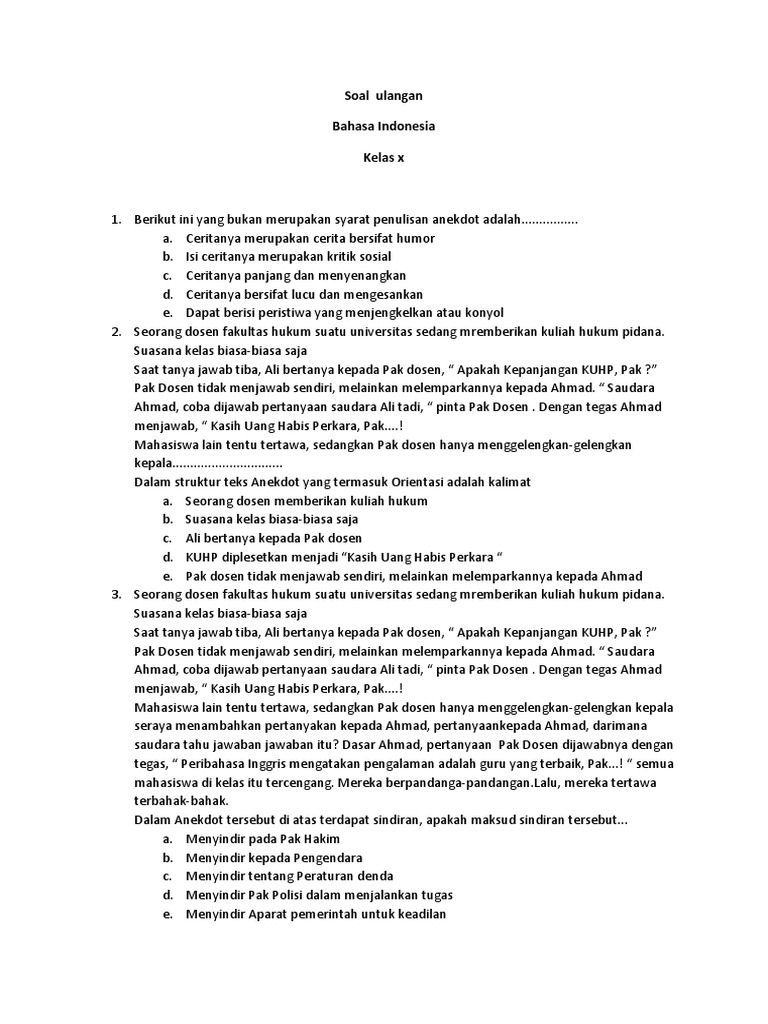 Soal Bahasa Indonesia Kelas X Kurikulum 2013