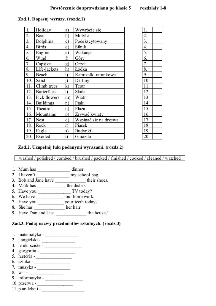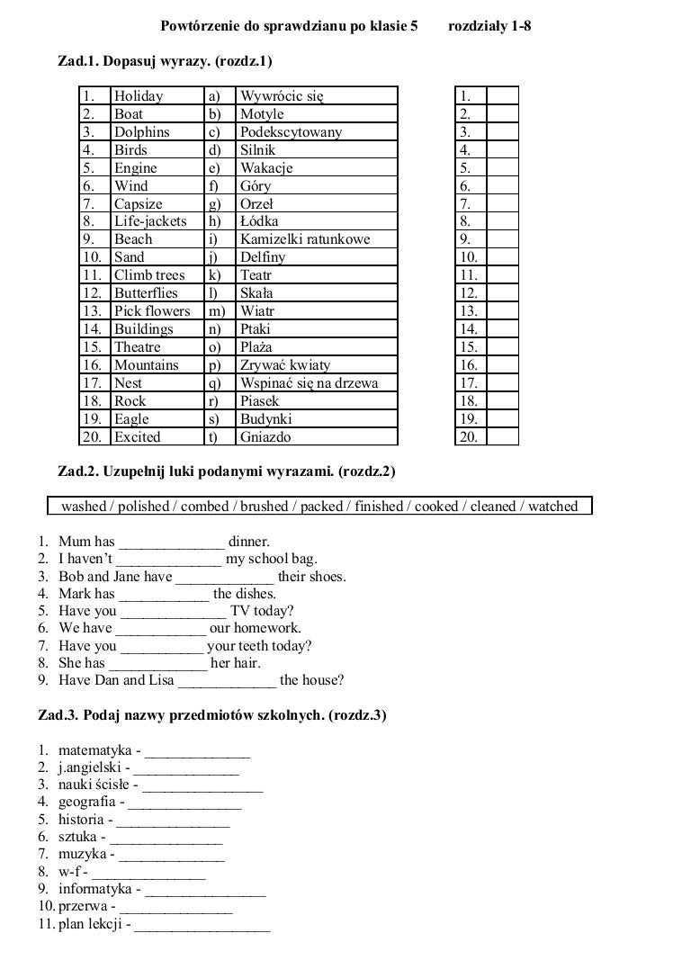 Powtorzenie Do Sprawdzianu Po Klasie 5