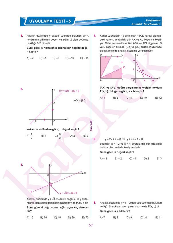Analitik Geometri Genel Tarama Cozumlu Test 09