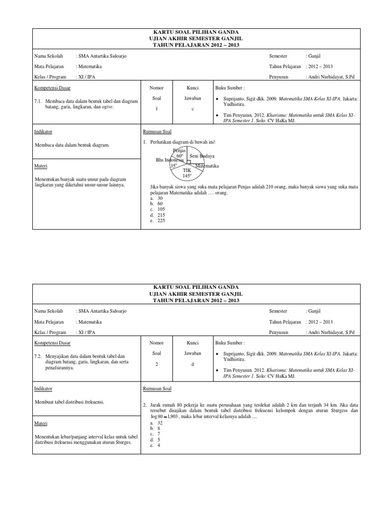 2 Kunci Jawaban Dan Kartu Soal Pilihan Ganda Mat Xi Ipa S1 2012 2013