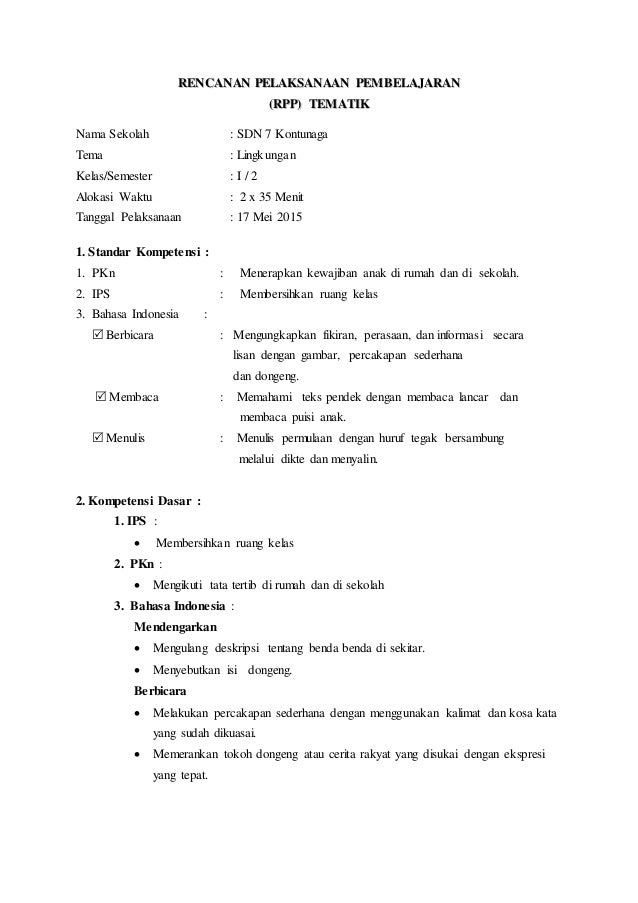 Contoh Rpp Tematik Terpadu Kelas Iv Pdf Free Download