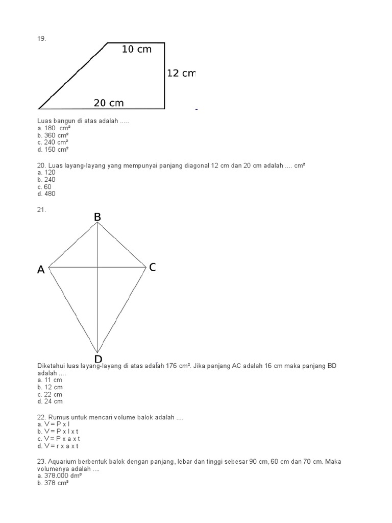 Rumus Luas Layang Layang Soal Dan Jawabannya
