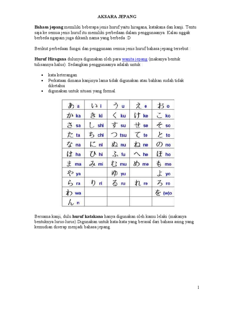 Nihongo 1 Pengenalan Aksara Jepang Our World