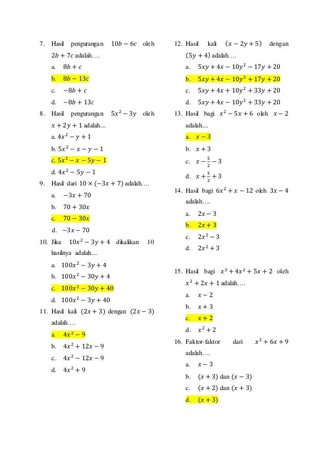 Matematika aljabar smp kelas 7 aljabar aljabar adalah salah satu cabang penting dalam matematika.