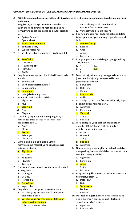 Pdf Gunakan Soal Berikut Untuk Belajar Menghadapi Soal Ujian