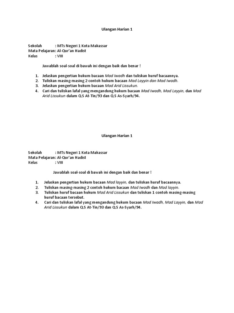 Contoh Soal Ulangan Harian Pendidikan Agama Islam Kelas Iv Format