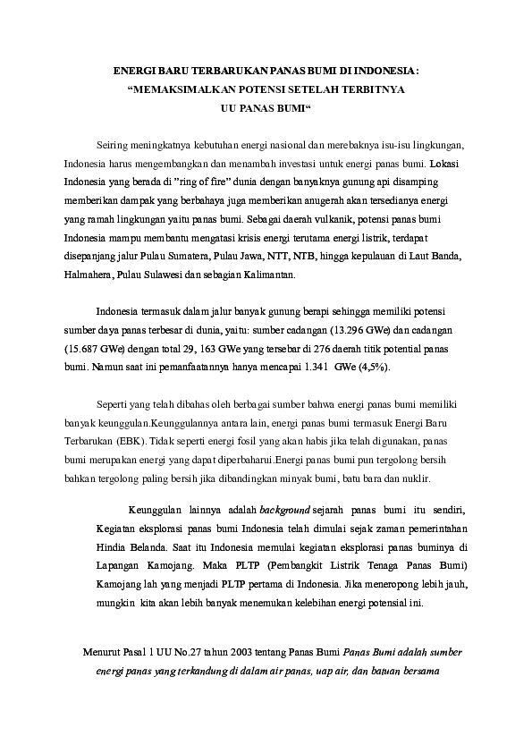 Energi Baru Terbarukan Panas Bumi Di Indonesia Memaksimalkan