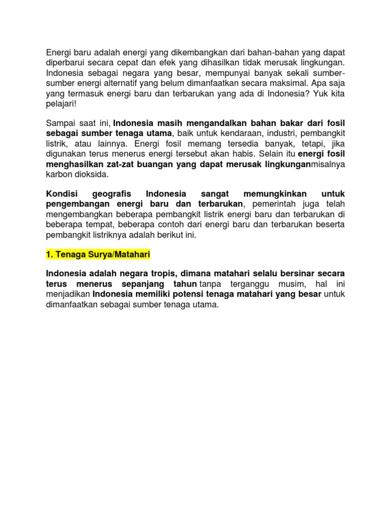 Energi Baru Dan Terbarukan Di Indonesia Meliputi