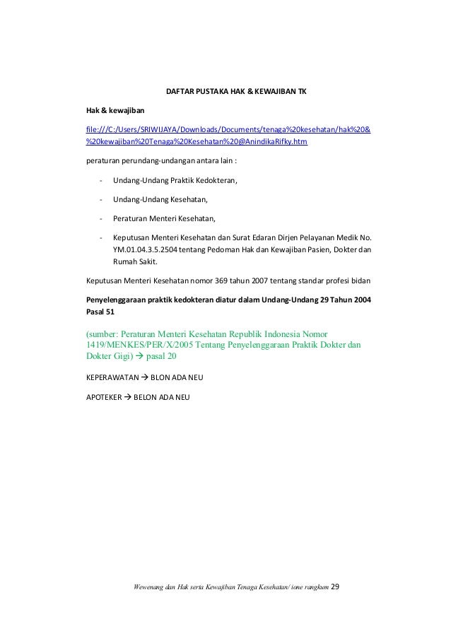 Hak Kewajiban Tenaga Kesehatan Perawat Apoteker Blon Ada