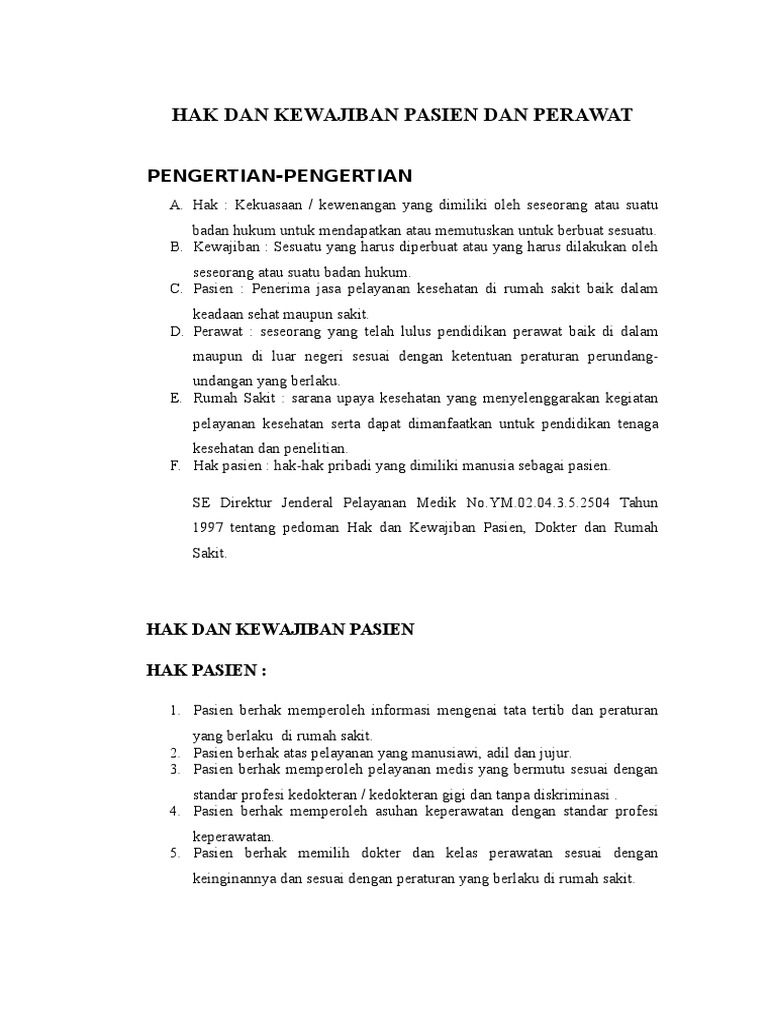 Hak Dan Kewajiban Pasien Perawat Rumah Sakit Dasar Hukum Pdf