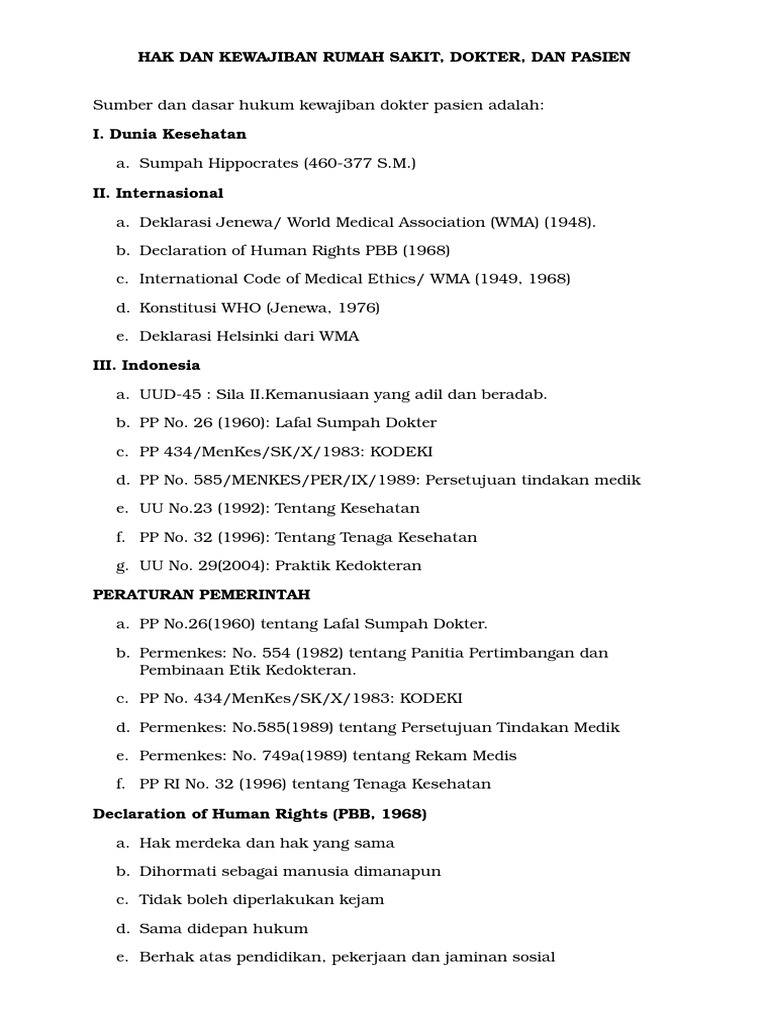 Hak Dan Kewajiban Rumah Sakit Dokter Dan Pasien Bagian 1 Cuma