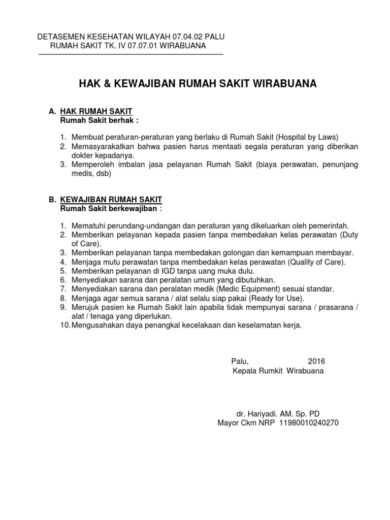 Hak Kewajiban Pasien Rst Slamet Riyadi