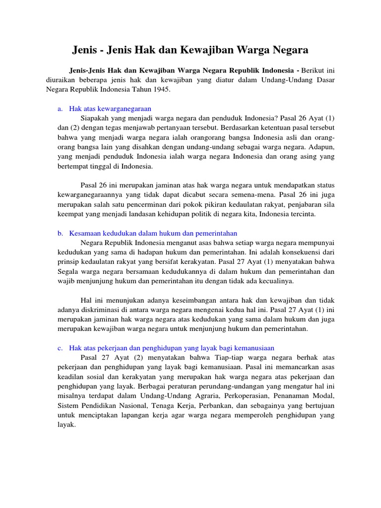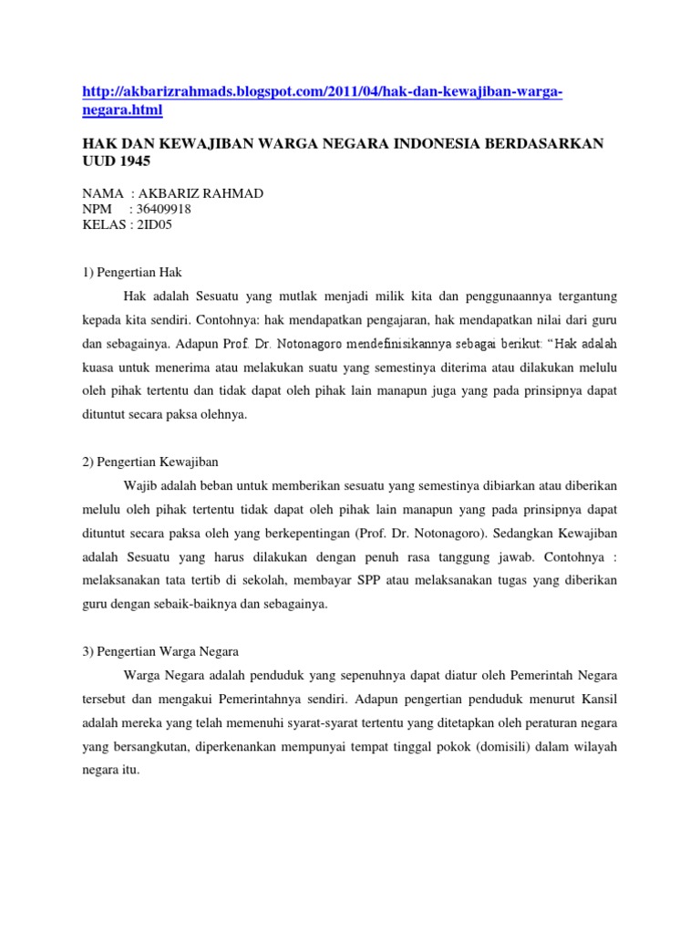 Hak Dan Kewajiban Warga Negara Indonesia Pdf Free Download