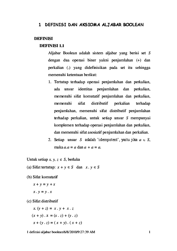 Definisi Aljabar Boolean Versi 11 Pdf Siti Rodiyah Academia Edu
