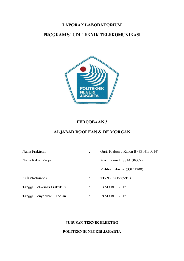 I Judul Percobaan Rangkaian Gerbang Logika Dan Aljabar Boolean Pdf