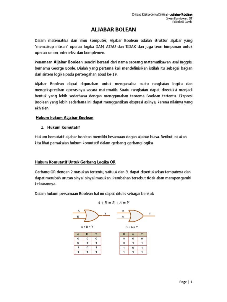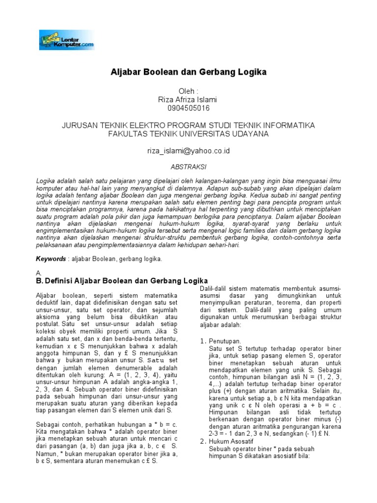 Aljabar Boolean Dan Gerbang Logika Dasar Pdf