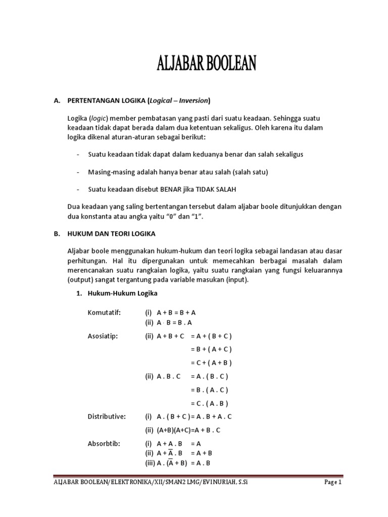 Ebook Materi Aljabar Boolean Informatika Pdf Hendro Komputer