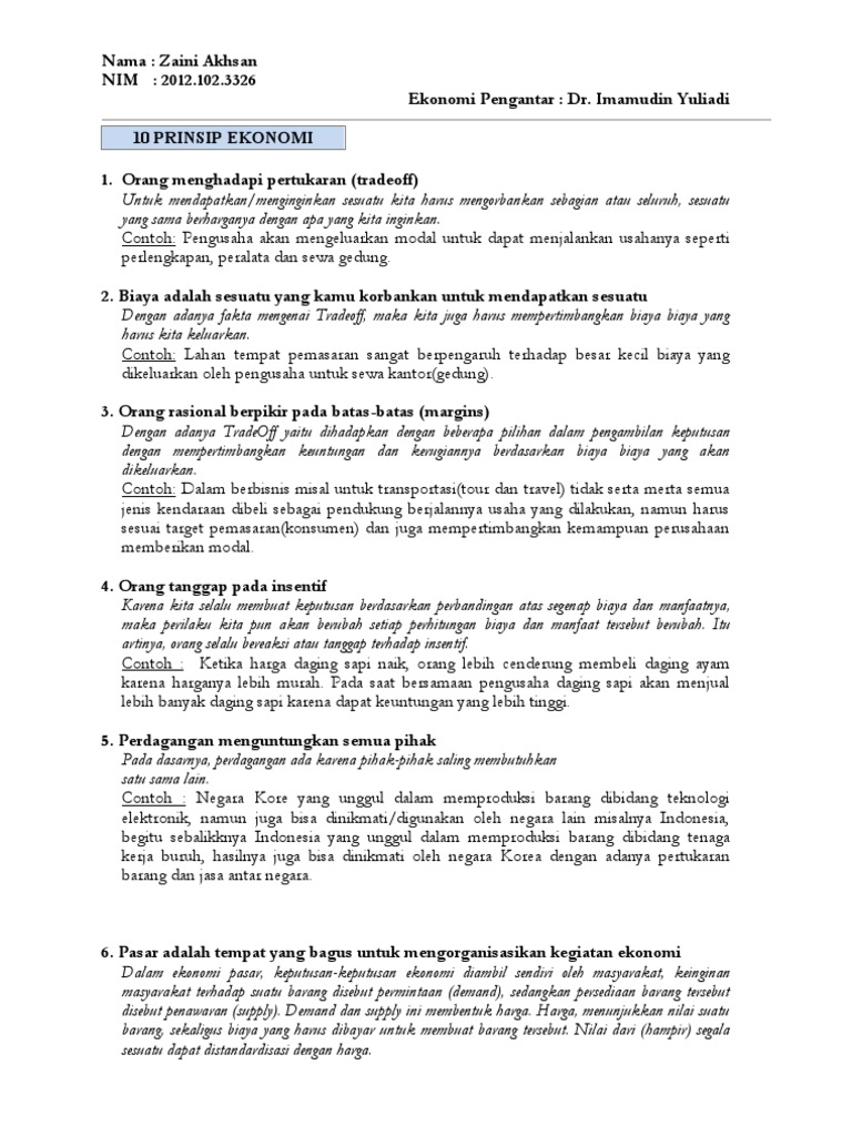 Tugas Ekonomi Pengantar 10 Prinsip Ekonomi