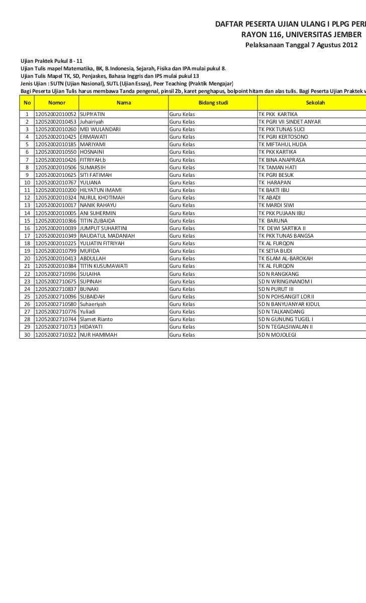 Daftar Kode Nomor Peserta Ujian Kota Kabupaten Se Jawa Tengah Untuk
