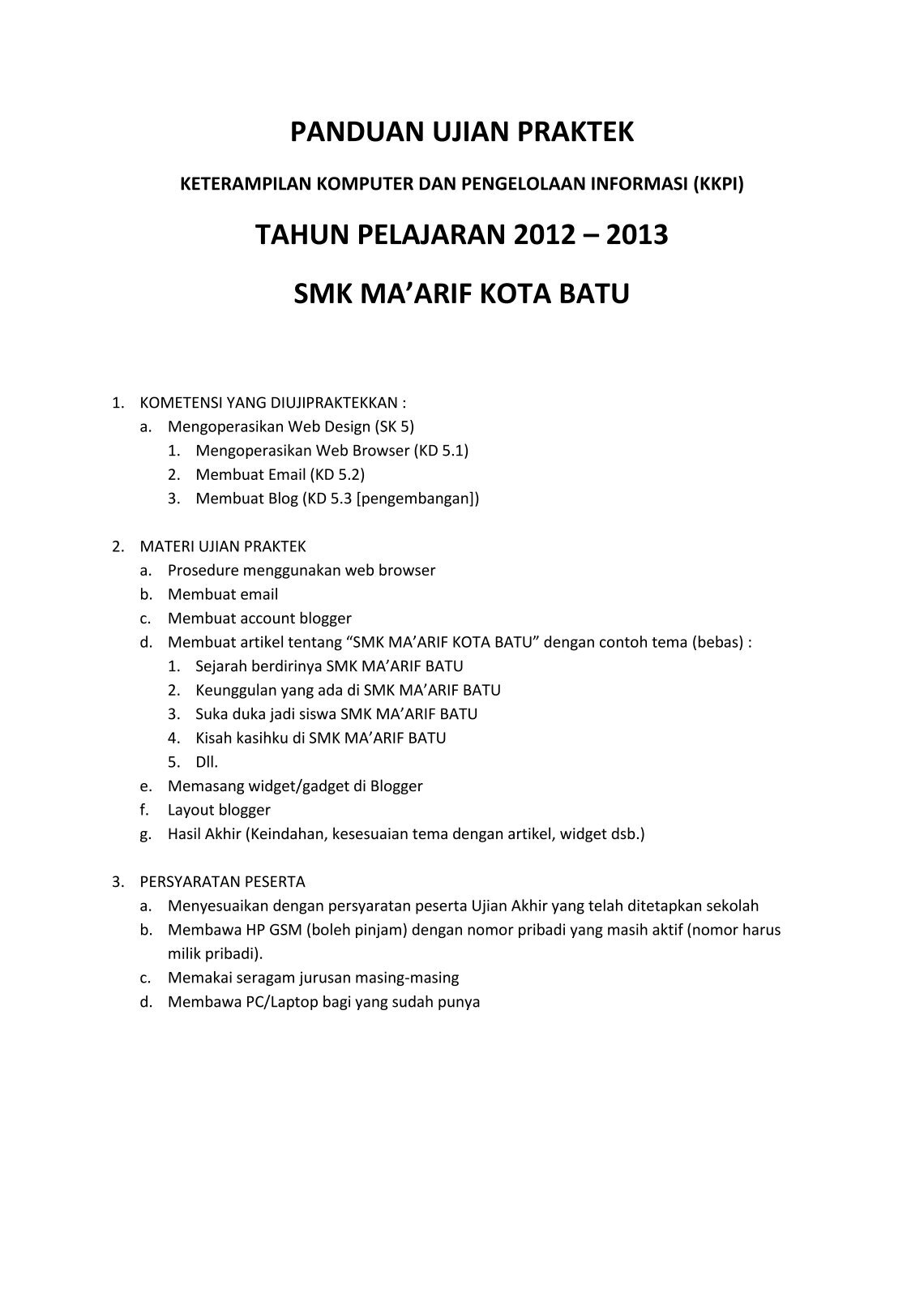 Ujian Praktek Kkpi Smk Maarif Batu Pdf