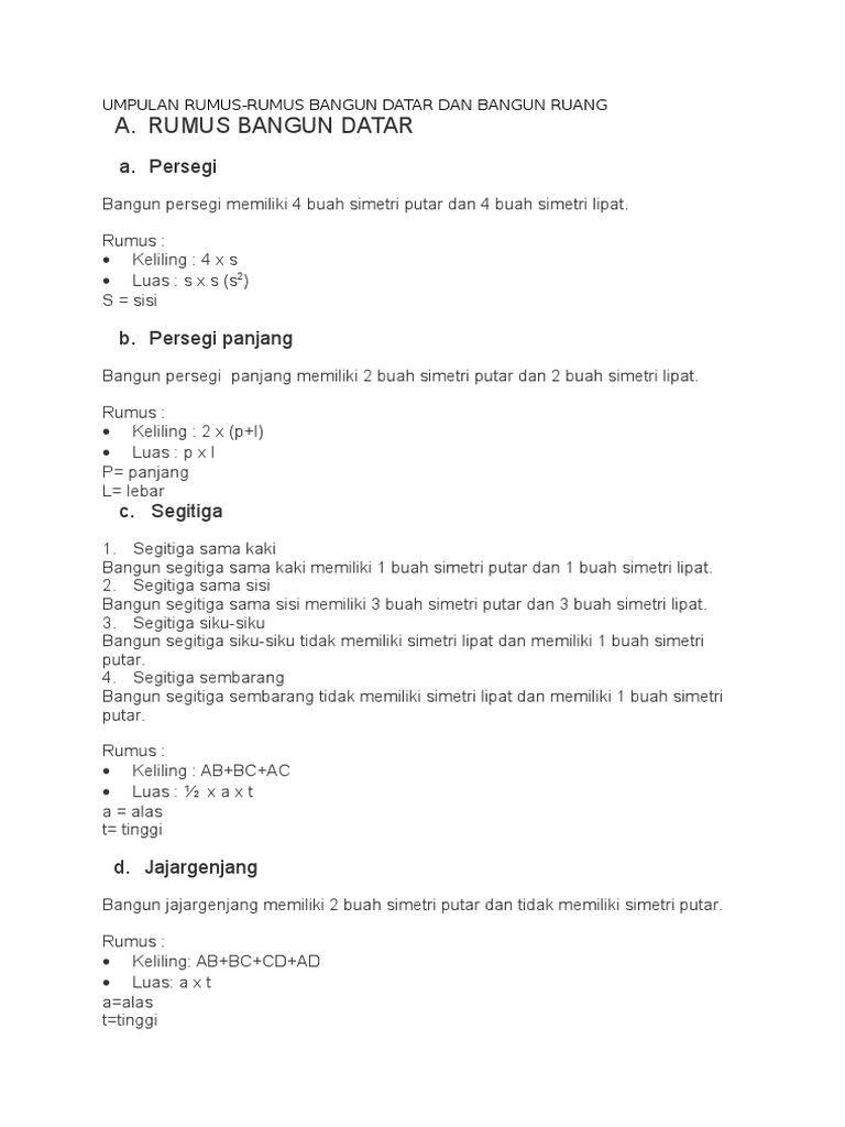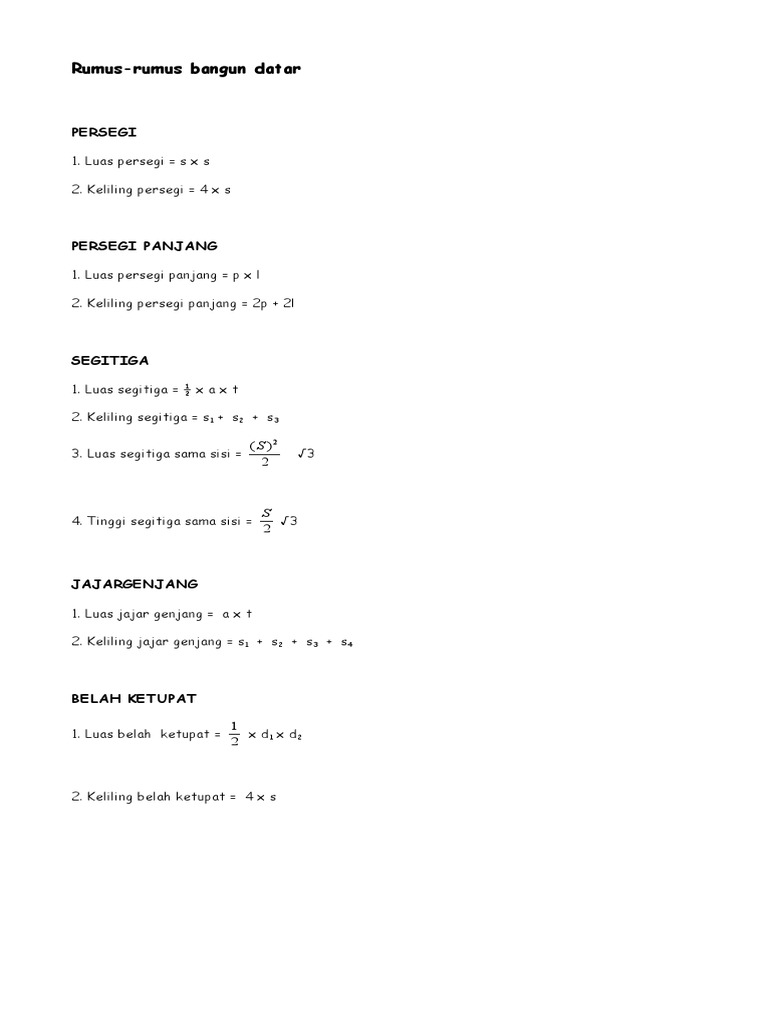 Rumus Bangun Datar Lengkap Menghitung Luas Dan Keliling