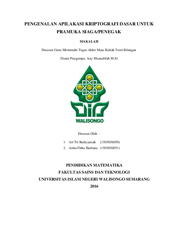 Pengenalan Apilakasi Kriptografi Dasar Untuk Pramuka Siaga Penegak