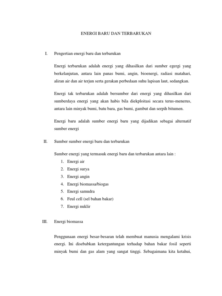 Energi Baru Energi Terbarukan Dan Energi Tak Terbarukan
