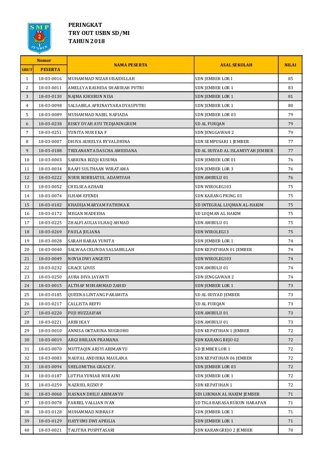 Ssc Area Jombang Hasil Try Out Usbn 2018 Oleh Ssc Jombang Rank