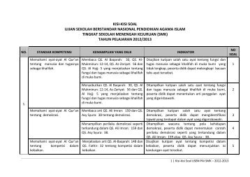 Kisi Kisi Soal Usbn Pai Smk A 2012 2013 Pendis Kemenag Ri