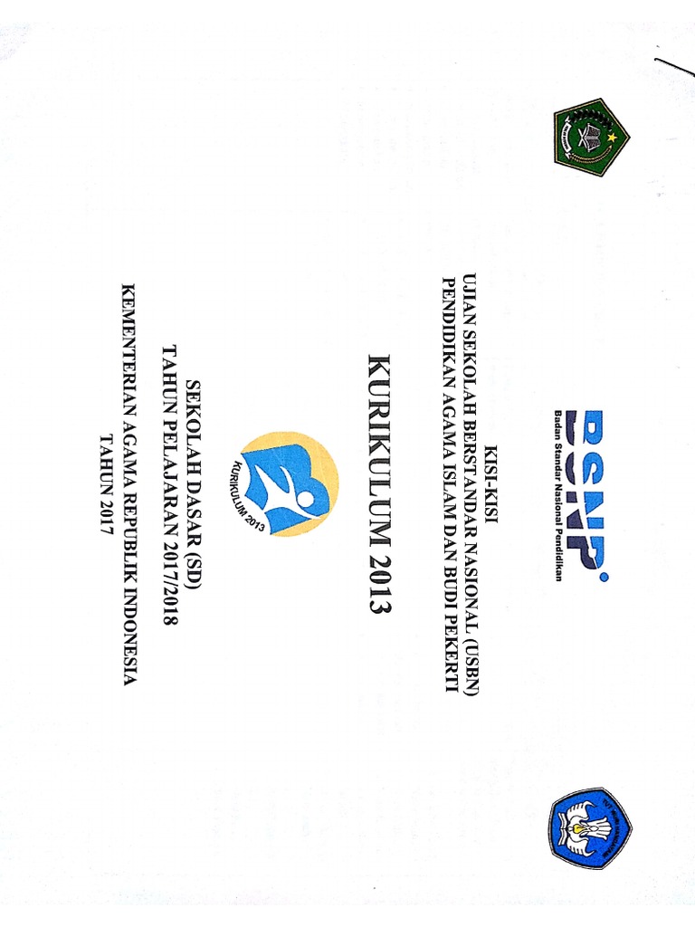 Kisi Kisi Usbn Pai Dan Budi Pekerti K 2013 Sd Tahun Pelajaran 2017