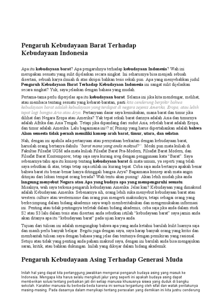 Pengaruh Kebudayaan Barat Terhadap Kebudayaan Indonesia