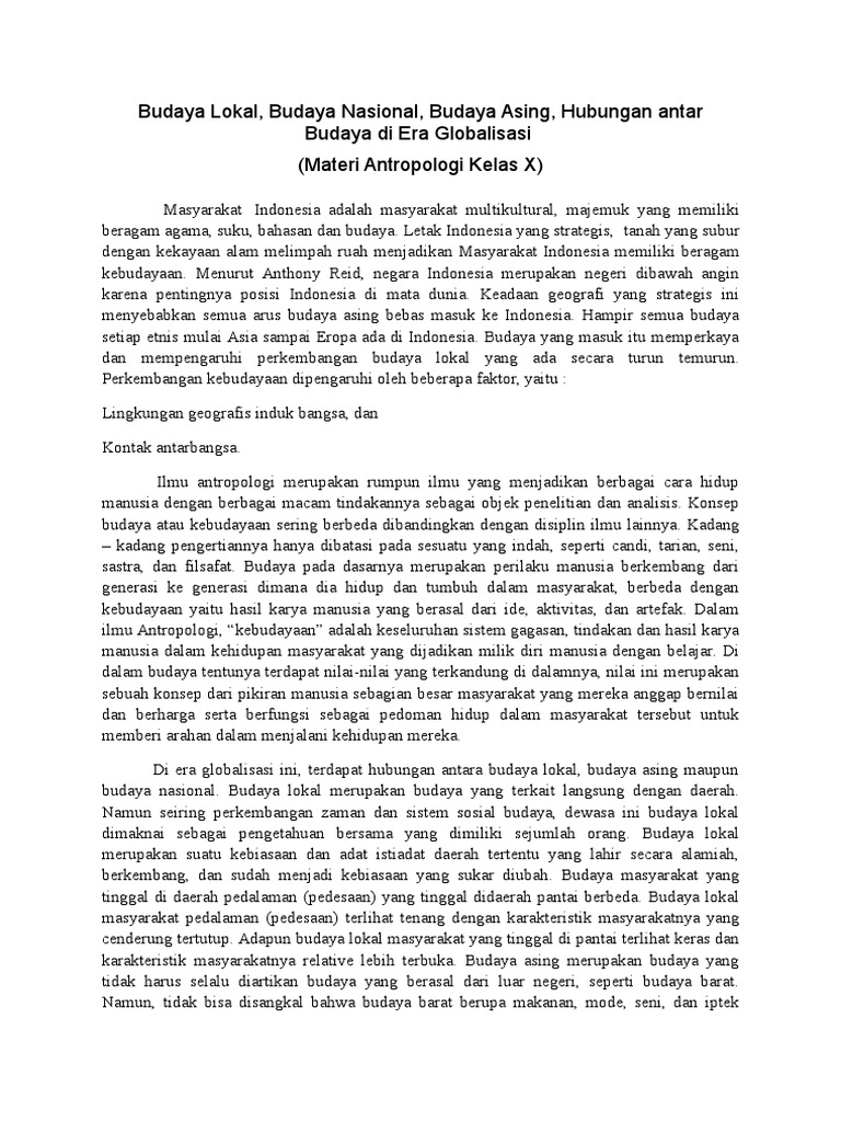 Materi Antropologi Kelas X Bab V Budaya Lokal Budaya Nasional