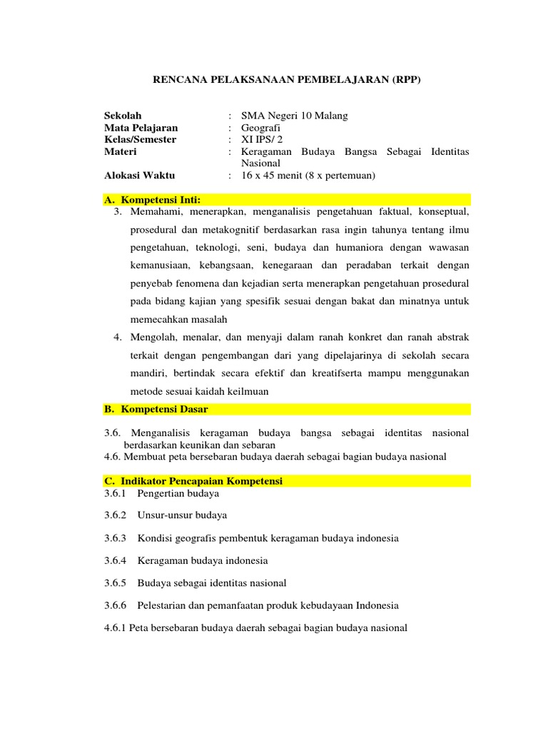 Rpp Keragaman Budaya Bangsa Indonesia Sebagai Identitaas Bangsa