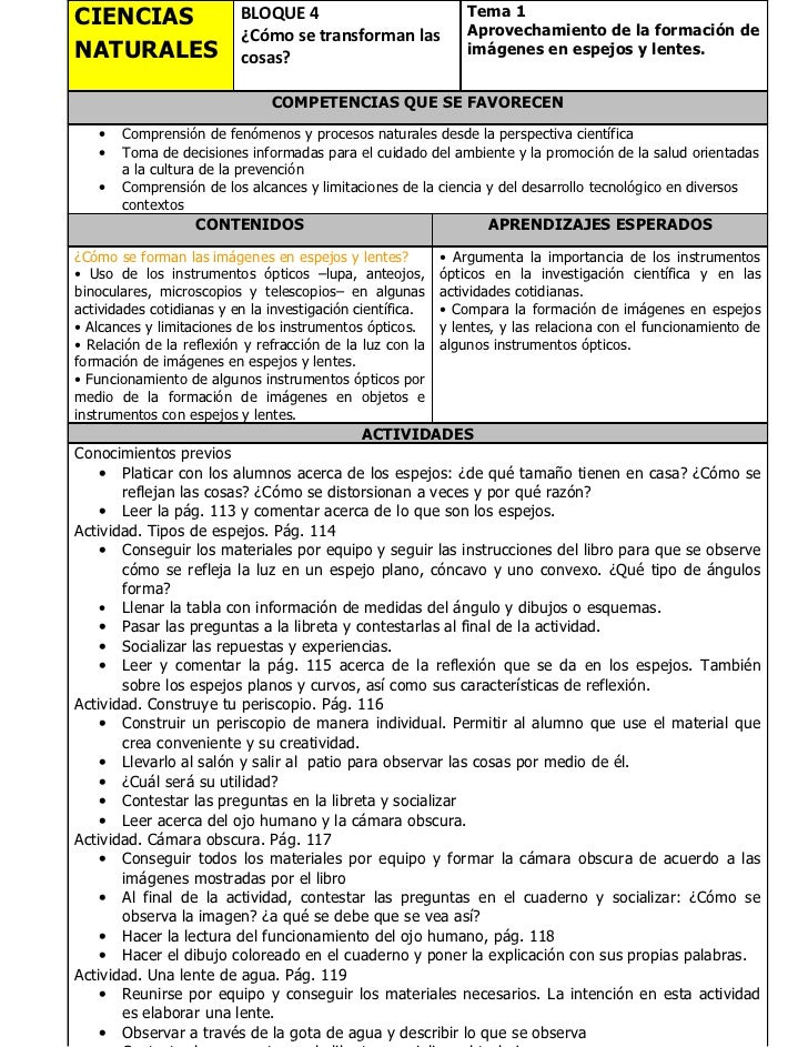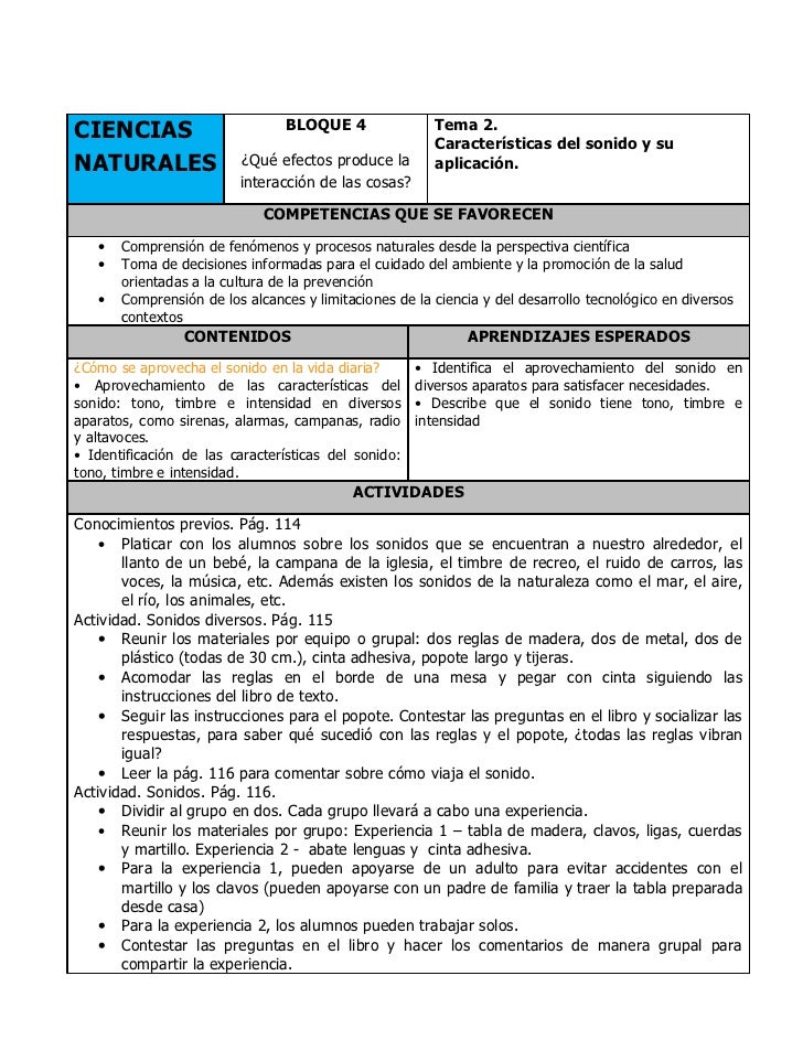 Plan De Clase Ciencias Naturales Bloque N º 1