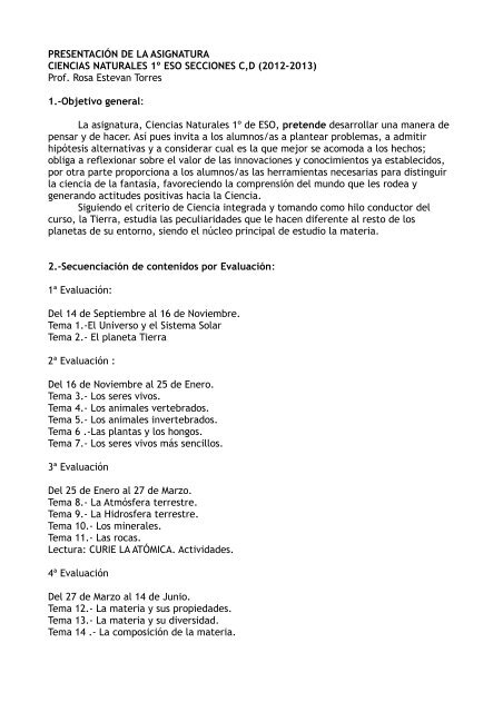 Presentacia N De La Asignatura Ciencias Naturales 1aº