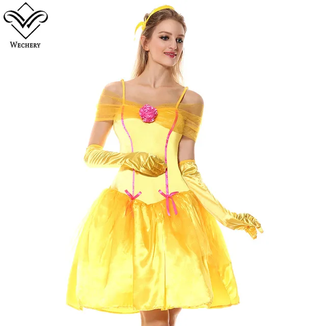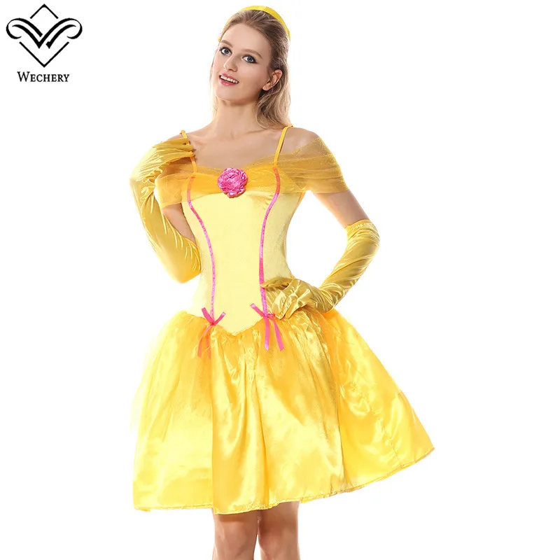 Wechery Dongeng Putri Cosplay Wanita Manis Kuning Mewah Gaun Dengan