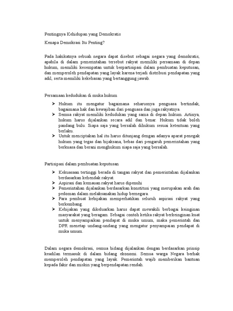 Pentingnya Kehidupan Yang Demokratis